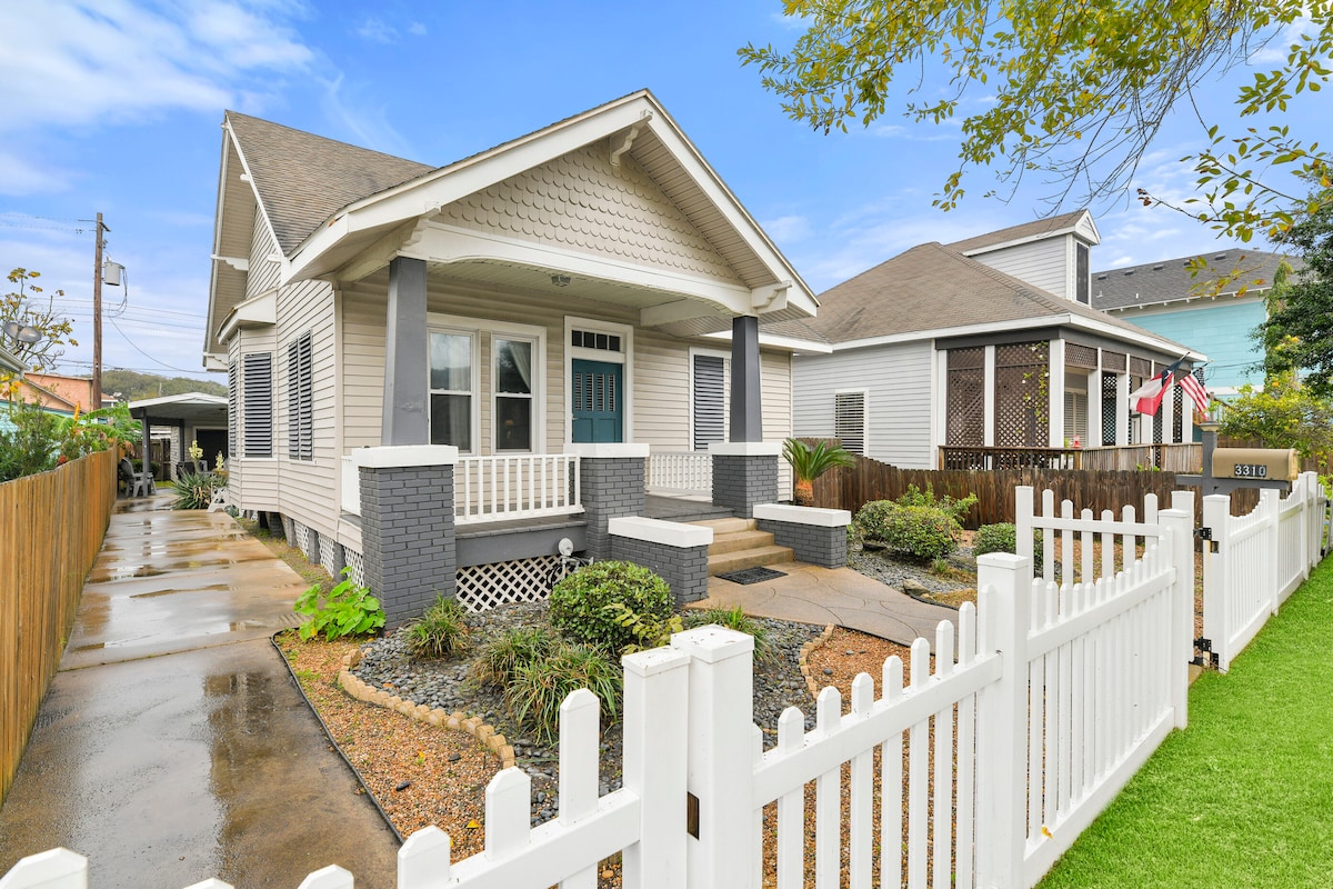 Check yourself into this lovely guest suite featuring a private entrance and off street parking. Centrally located just 3 miles from the cruise ship terminals, 4 miles from Moody Gardens, and a 10 minute walk to the beach! The suite is an addition to a well maintained craftsman bungalow in a residential neighborhood. It features quality solid wood furnishings, stylish decor, and several amenities including coffee maker w/coffee supplies, microwave, hair dryer, smart TV, dishes, and seating.