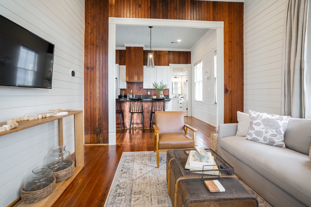 We call our home Sunday's Famous Weekender because it is famous. Our tiny home is on HGTV & DIY Network's -Restoring Galveston Season 2! So...she is not only a tiny house, but she is FAMOUS! Completely renovated tiny house. Have you ever wanted to see what it is like to not only stay in a tiny house but, one that is on tv and near the beach? This home is spectacular! The home is 648 square feet but, feels much bigger and includes a 2 car garage and deck for entertaining!