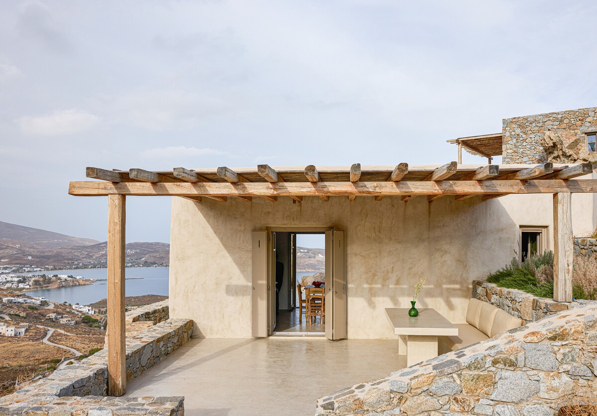 SNAKE, part of the Glaronissi Residence - Serifians houses is a perfect retreat from the fast pace of the world. Nestled on a natural valley, the headland gives way to a pristine sandy beach on the west and stunning theatrical natural rock and sea bays on the east. The house is built out of stone in the unpretentious spirit of the island and has the stamp of its owner’s architectural view. Ideal for families or friends seeking to escape from the ordinary.