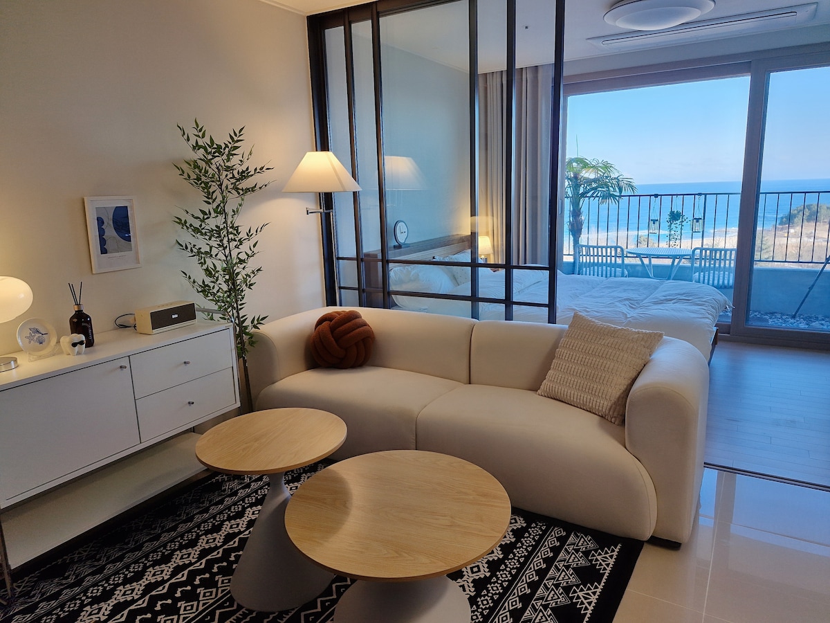 It is a charming accommodation that can heal the whole heart with a clean and cozy interior, a fantastic view of the sea and sandy beach that only the middle floor has, different from the high-rise, and a panoramic wave view. 🏖🏝🌊 It is connected to Jukdo Beach and Ingu Beach, the sanctuary of surfers in Yangyang. If you walk along the deck road, you will arrive at Yangnidan-gil!🛤 Also, enjoy the sunrise, a spectacular view of the East Sea, from the accommodation through the balcony.🌅🌌 It's also nice to sit on the balcony with a steaming cup of coffee. This is a real coffee shop👍☕️☕️☕️ 22 minutes from Yangyang General Passenger Terminal, It is located 37 minutes from Gangneung Intercity Bus Terminal. It consists of a double bed in a room that provides comfort and comfort. ▶Non-face-to-face check-in (available by entering the keypad number of the accommodation) Linens sterilized at high temperatures in a▶ professional laundry ▶Disinfectant, disinfection of rooms through sterilization, disinfection ▶Cooking is allowed (cooking utensils such as pots and pans and tableware are provided) ▶Netflix (log in to your account to watch) ▶Message response time: 09: 00am-11: 00pm