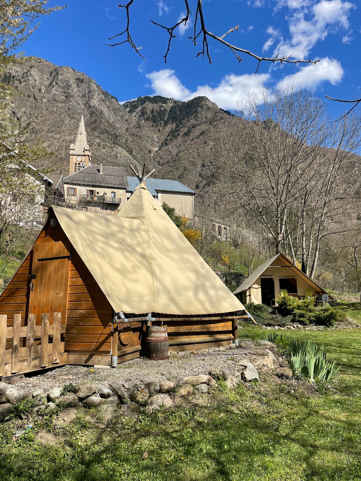 The "Évasion" Cabatente Treat yourself to a timeless break in the heart of nature, with La Cabatente Évasion at the "Champ des Cimes" campsite. A hut at the top… of well-being Located in a preserved environment, the Cabatente is designed to reconnect you to the essentials. Surrounded by greenery and bathed in natural light, it offers panoramic views of the surrounding peaks — a haven of peace, away from the hustle and bustle.