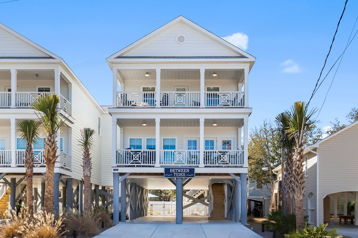 Between Tides is a one of a kind designer 5-bedroom beach retreat in Garden City just steps from the beach. Sleeping 12, this upscale home features a private saltwater pool, a breathtaking custom mural by a local artist, a signature selfie photo wall, and high-end modern furnishings exceeding your average vacation rental. Every detail has been intentionally curated to create a space that feels as special as the memories you’ll make here. From the moment you walk in, you’ll feel it!