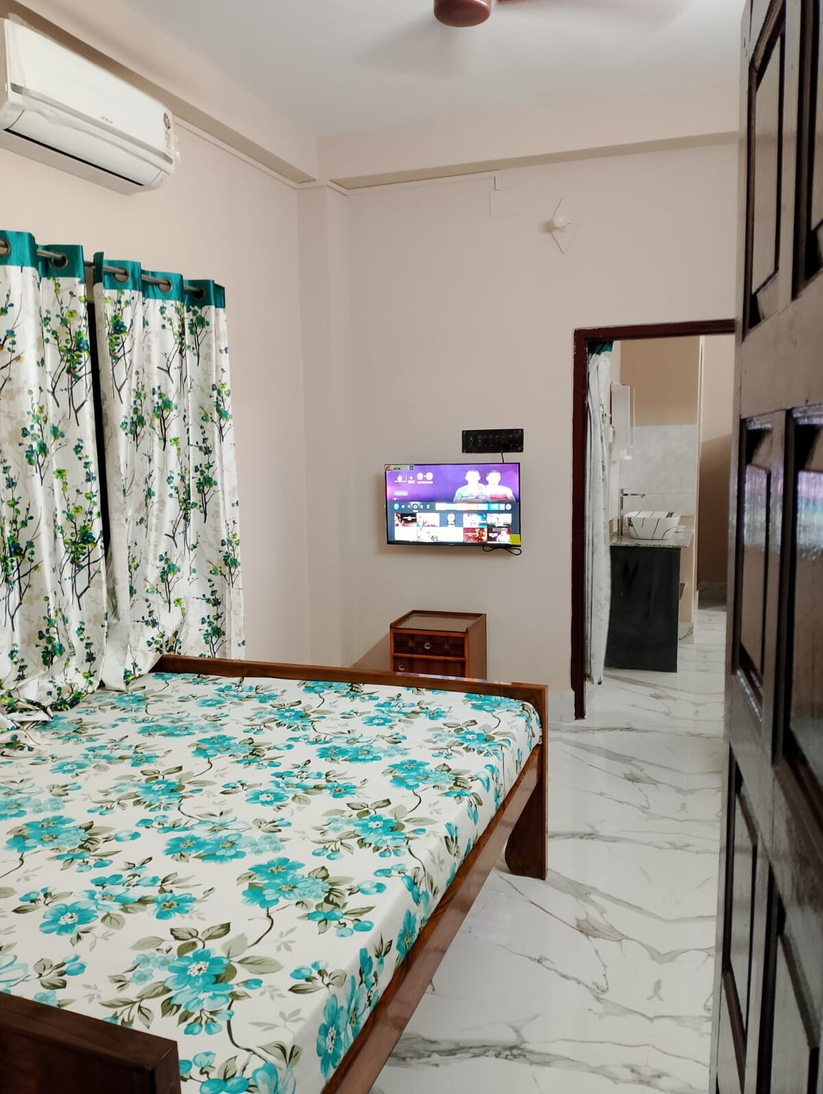 Enjoy a memorable stay with your loved ones at this centrally located, fully furnished 3BHK apartment in the heart of South Kolkata, elegant & modern décor 🛏 Sleeps 4 | 3 Bedrooms | 2 Bathrooms 📍 Just 500m from Gariahat 📺 Smart TV with Netflix, Prime Video 🛗 1st Floor with Elevator 🧹 Daily Housekeeping Included ✅ Exclusively for families 🚫 Bachelor males & unmarried couples not permitted 🍽️ Modular kitchen with utensils, oven, microwave, & fridge ❄️ All the rooms have AC for your comfort