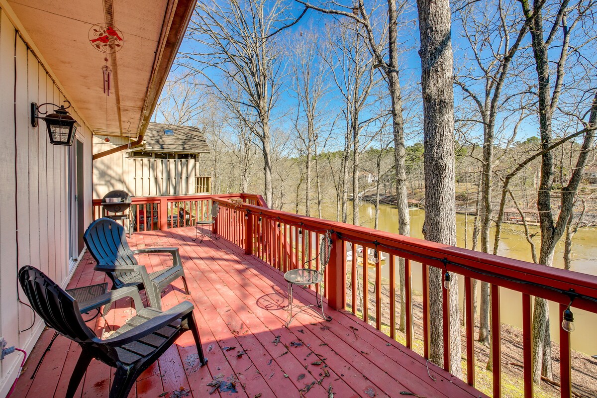 Relax with the whole family at this peaceful place to stay on Lake Desoto. Enjoy swimming, kayaking, boating, and paddle boarding right off your private deck. This property also features a private boat slip! Hot Springs Village Arkansas is a gated community that has 11 beautiful lakes, 9 world-class golf courses, 30 plus miles of hiking, biking and walking trails, along with various sporting clubs.