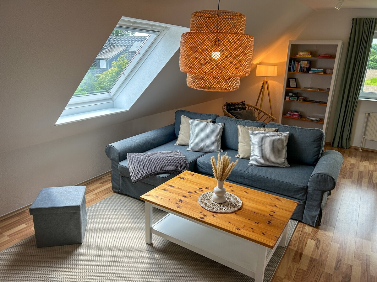 The vacation rental is located on the upper floor of a residential building. It is suitable for up to 3 people. There is a living room with sofa bed and adjoining shower room, and a small bedroom with single bed and separate toilet. The kitchen is well equipped. Linens, towels and Wi-Fi are included. The nearest bakery is about 1.3 km away, the nearest supermarket 2 km. It is a 5-minute walk to the AZL Luhmühlen, and to the Westergellerser Heide event site it is approx. 20 minutes' walk (2 km)