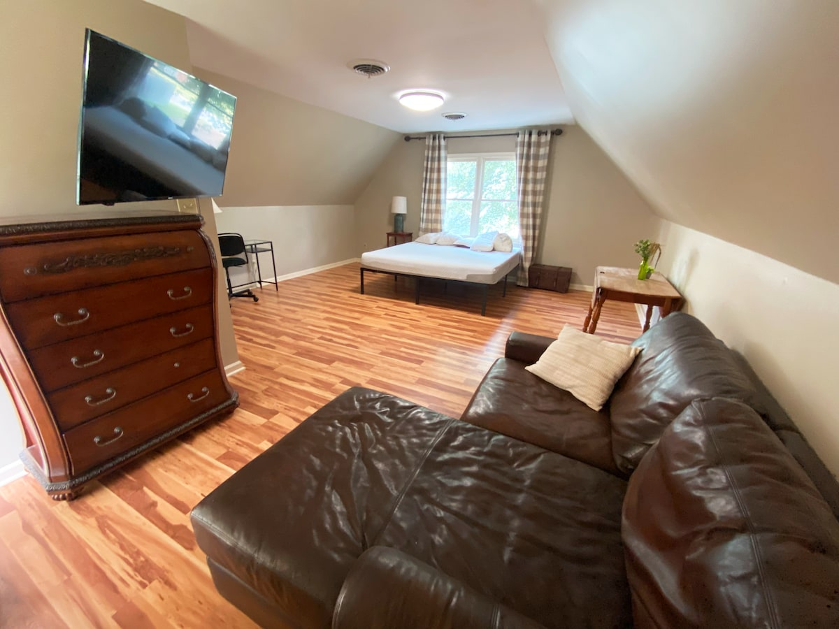 Immerse yourself in the Soul of Memphis in our centrally-located 1907 Arts & Crafts Carriage house. This luxury tiny home was taken to the studs and completely redone with historic preservation and architectural design at the heartbeat of the project. Nestled in the Historic Annesdale Mansion Preservation District, we're the ideal space for a small family, a couple's getaway, or a traveling nurse. State-of-the-art home theater, 24' cathedral ceilings, gated parking under carport & full kitchen!