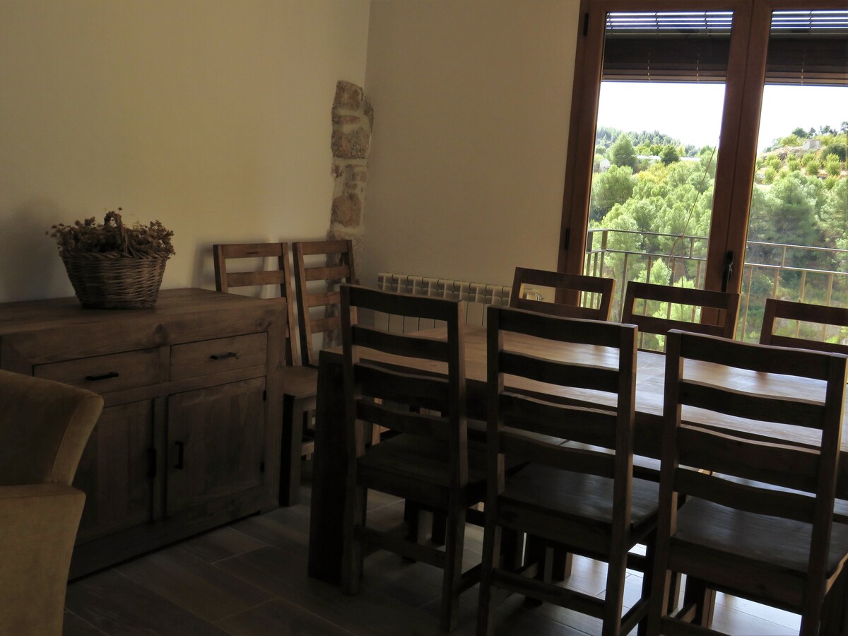 El Gresol is a rural mountain village house, featuring 3 floors and a large private garden. It is located in Senan (Tarragona) 80 minutes from Barcelona airport and 45 minutes from the beach. Next to the "Poblet Monastery" and "Vallbona de les Monges". The village of Senan is one of the 5 smallest villages in Catalonia where peace and nature are our main allies. The environment favors an ideal disconnection, perfect for getting away from the busy city life.