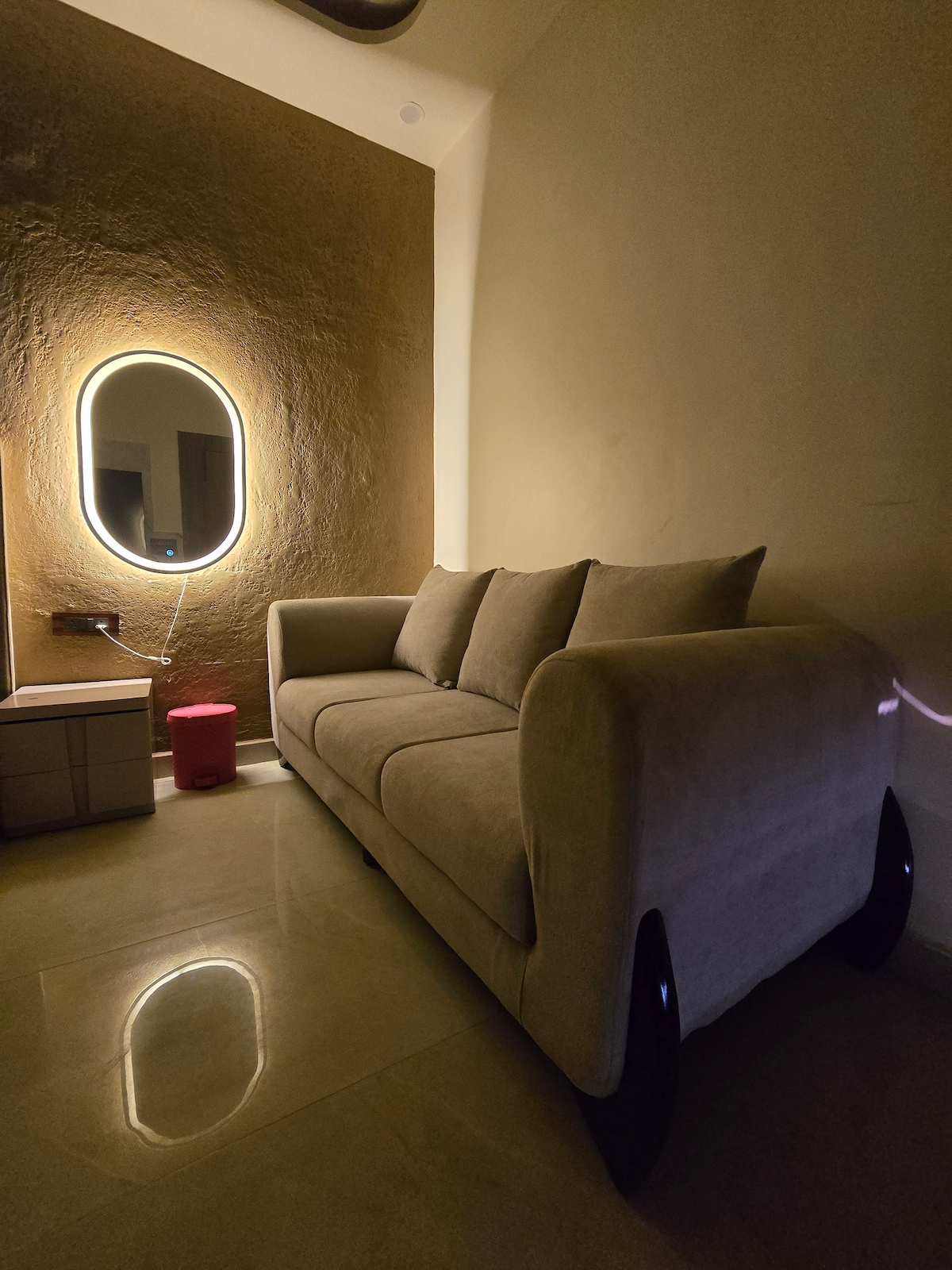 About This Property:- ✨ Master Bedroom – Featuring a Super King-size bed with an ultra-luxury Sleepwell mattress (worth ₹1.3L) for unmatched comfort, a 3-seater plush sofa, split AC, smart ceiling fan, 65-inch Android QLED TV with JBL soundbar, attached washroom, and thoughtfully designed lighting that creates a cozy, welcoming vibe. 🌿 Spacious Garden – Enjoy a 330 sq. ft. private garden with a stylish seating area, perfect for moonlit nights with fancy warm wall lights for a serene ambiance.