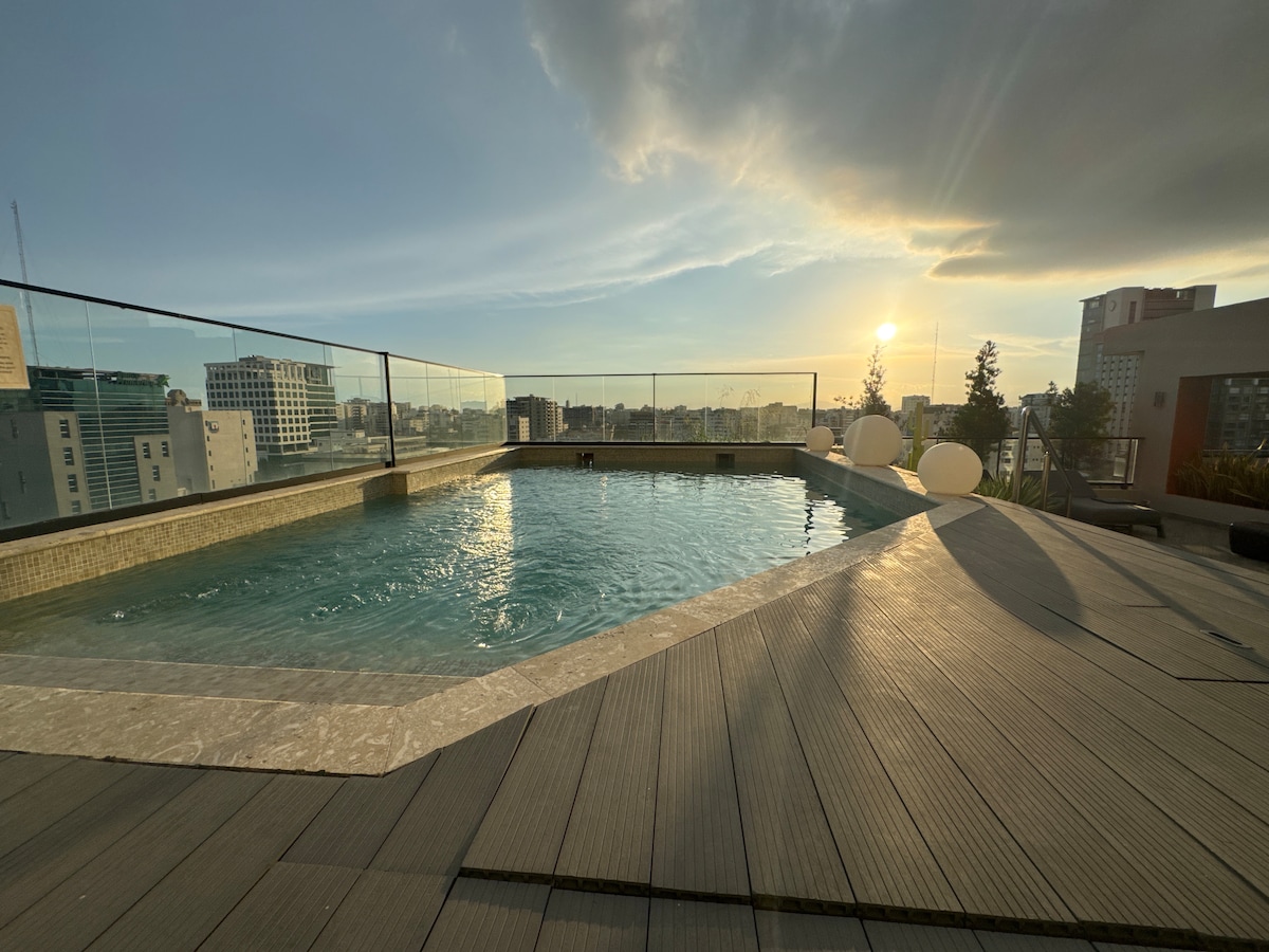 Bienvenido a tu nuevo hogar en Santo Domingo; este espacio ha sido diseñado para proporcionarte una experiencia única. WIFI RÁPIDO SALA -Sofá grande -Aire acondicionado -Smart TV -TERRACE/BALCONY Impresionantes vistas de la ciudad DINING / COCINA -Asientos para dos -Refrigerador/Estufa -Utensilios HABITACIÓN -Cama king. -Smart Tv -Aire acondicionado -Baño -Piscina y barbacoa -Lobby -GYM -Dos ascensores -1 parqueo -Smart Lock ¿Qué estás esperando? Reserva tu estadía el día de hoy!