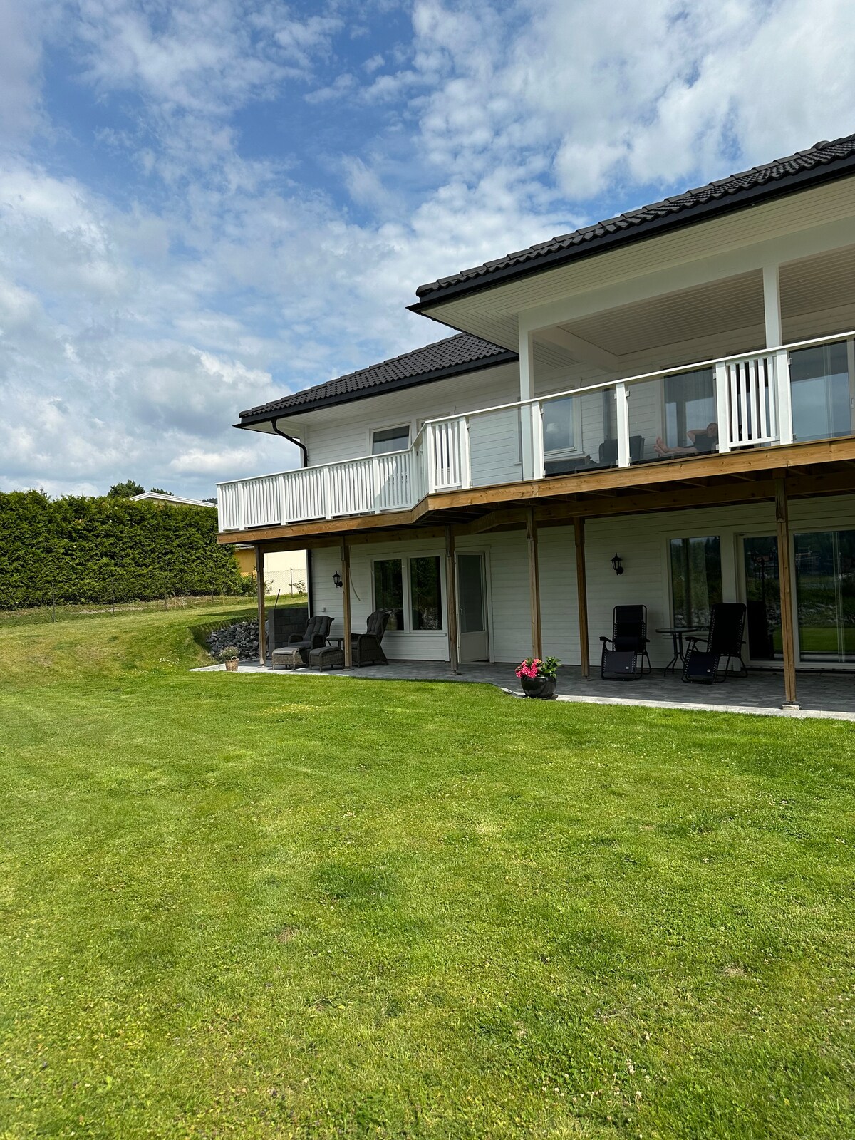 Bright and pleasant apartment in rural and scenic surroundings on the peninsula Røyse, with lovely views of Tyrifjorden. The apartment is about 60 sqm, on the 1st floor of a residential building, and has its own entrance. In the living room there is a TV with Blu-ray player, Chromecast and many TV channels. The bedroom has a double bed. In addition, two mattresses that can be placed on the floor. 1 person (max 180cm) can sleep on the sofa in the living room. Shielded, sunny terrace with dining area and sofa corner. The rent includes everything, bring toiletries and food.