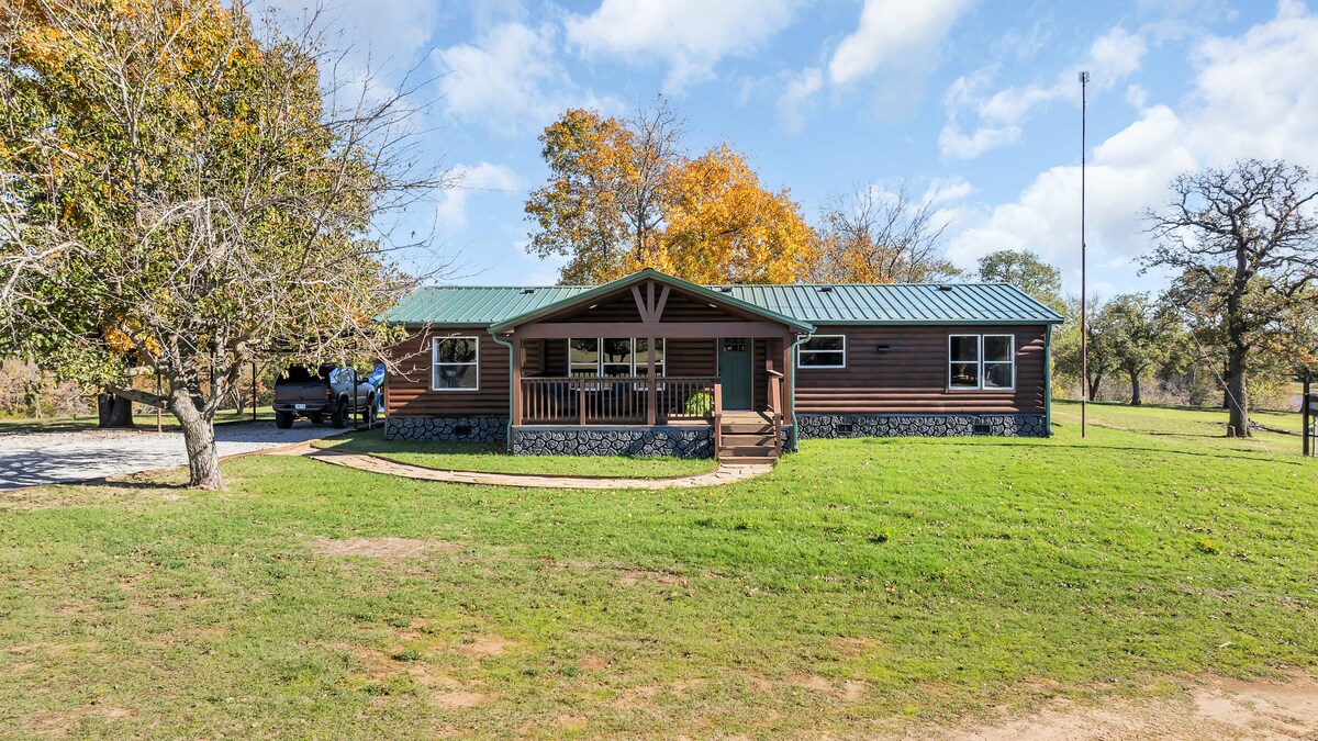 Peaceful Retreat “Hidden Oaks” is a cozy 3-bedroom, 2-bath REAL log cabin in Sulphur, just minutes from the lake, Turner Falls, and Chickasaw National Recreation Area. Enjoy modern comforts like a 4K Smart TV, free WiFi, and an outdoor fire pit for s’mores. Secluded and serene—this isn’t a luxury resort, but a perfect place to unplug and escape in an older log cabin vibe. Leave the 4-5 star hotel behind and get back to the country. We look forward to serving you and your guests!