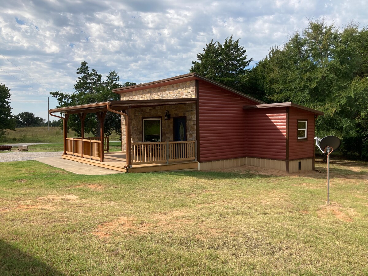 Kick back and relax in this peaceful cabin getaway. This 2-bedroom retreat features 2 queen beds, a bathroom with a large shower, kitchen with full size appliances, AC, WiFi and heating. Minutes from Turner Falls, Guy Sandy Boat Launch and many other area activities. Whether you're planning a weekend escape or an extended stay, our place is equipped for both long or short stays to make your holiday one to remember.