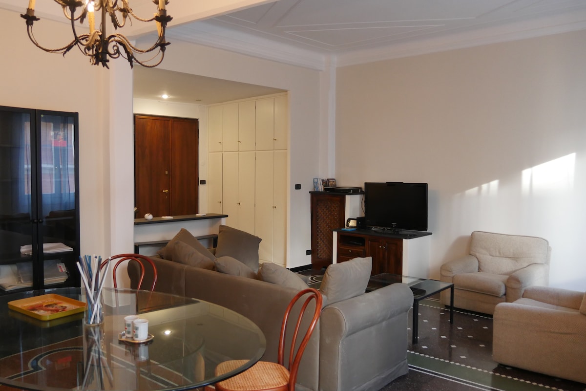 [Parking space in private garage and Free Wifi] The apartment, equipped with a terrace, is located in the Genoa Sestri district in a very central position, but in a quiet private context. Various commercial activities are located in the residence including bar, pizzeria and delicatessen. The shopping pedonal street, via Sestri, is only 3 minutes by walk. The historic center of Genoa is only 8 km away Railway station: 350 m Bus stop: 50 m C. Colombo Airport: 1.8 Km Ferry boarding:6.2km
