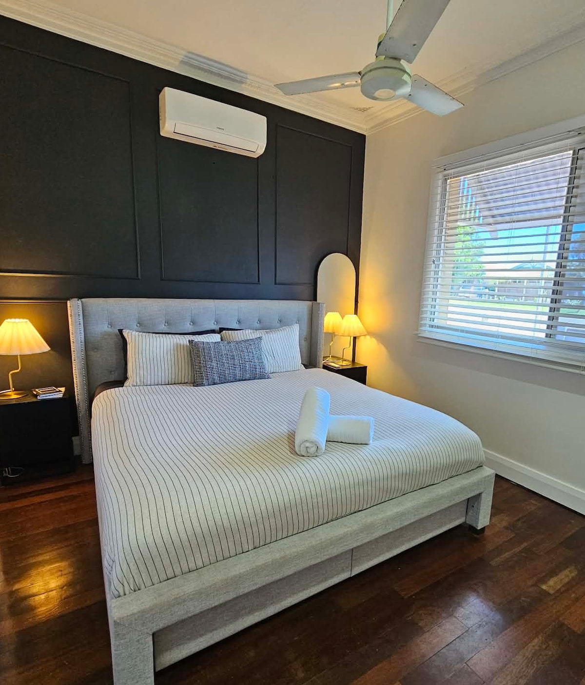A centrally located 5 bedroom house 250 meters away from the Beresford Foreshore overlooking Champion Bay. Three bedrooms contain king beds, one with a queen and one with a single. Four bedrooms contain televisions. The Foreshore boats AJ’s cafe which is perfect for a cuppa whilst overlooking the bay. Next to the coffee shop is an enclosed playground for the kids. 30 Knotts Distillery is located 230 meters away. Northgate shopping centre is 450m away.