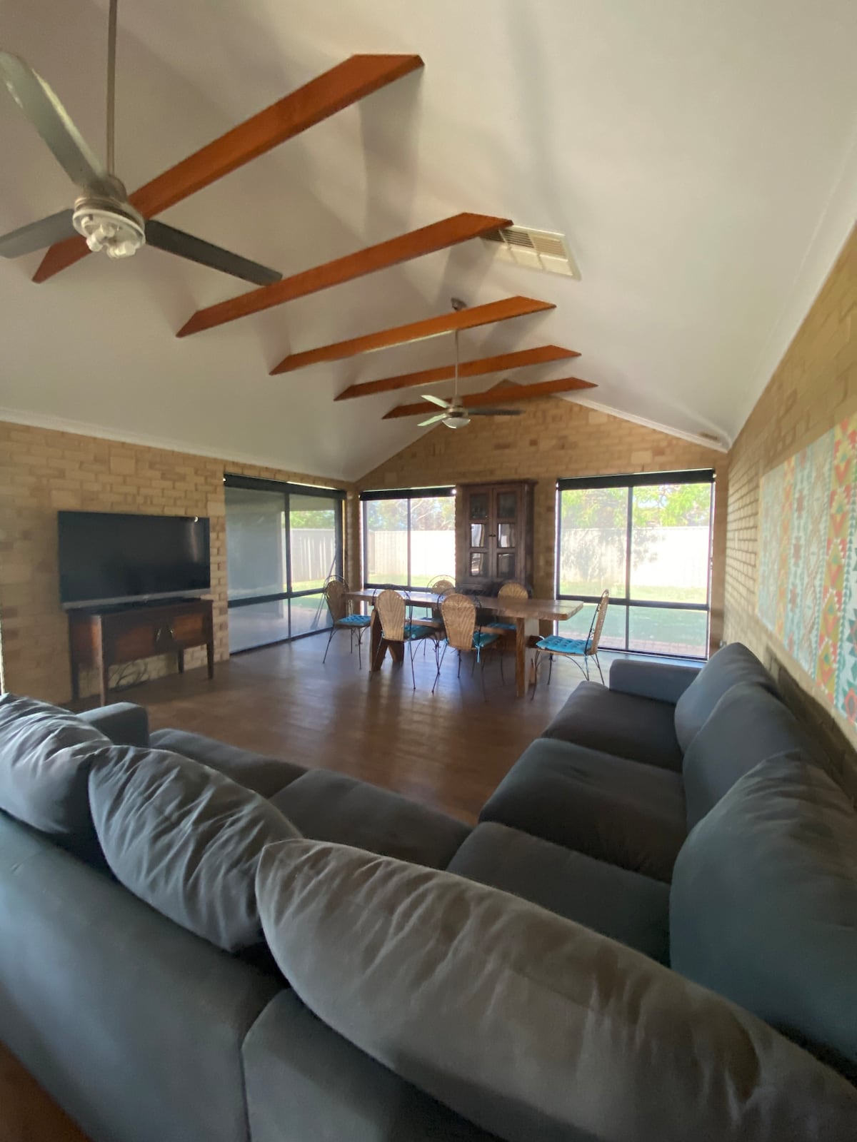 A dog friendly centrally located 5 bedroom house 250 meters away from the Beresford Foreshore overlooking Champion Bay. Three bedrooms contain king beds, one with a queen and one with a single. Four bedrooms contain televisions. The Foreshore boats AJ’s cafe which is perfect for a cuppa whilst overlooking the bay. Next to the coffee shop is an enclosed playground for the kids. 30 Knotts Distillery is located 230 meters away. Northgate shopping centre is 450m away.