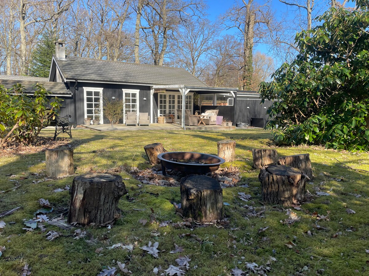 The house is located in beautiful, quiet natural surroundings down to Esrum River. From the house, there is a view of the garden, river and fields. Next to the house is the main house where there may sometimes be someone. The house is beautiful with a lovely kitchen and bathroom and everything a house should have. 10 min walk from a beautiful sandy beach. There is free access to kayaks, SUP, campfire, bicycles and fishing rods. New WILDERNESS BATH and ICE BATH are available for a fee.