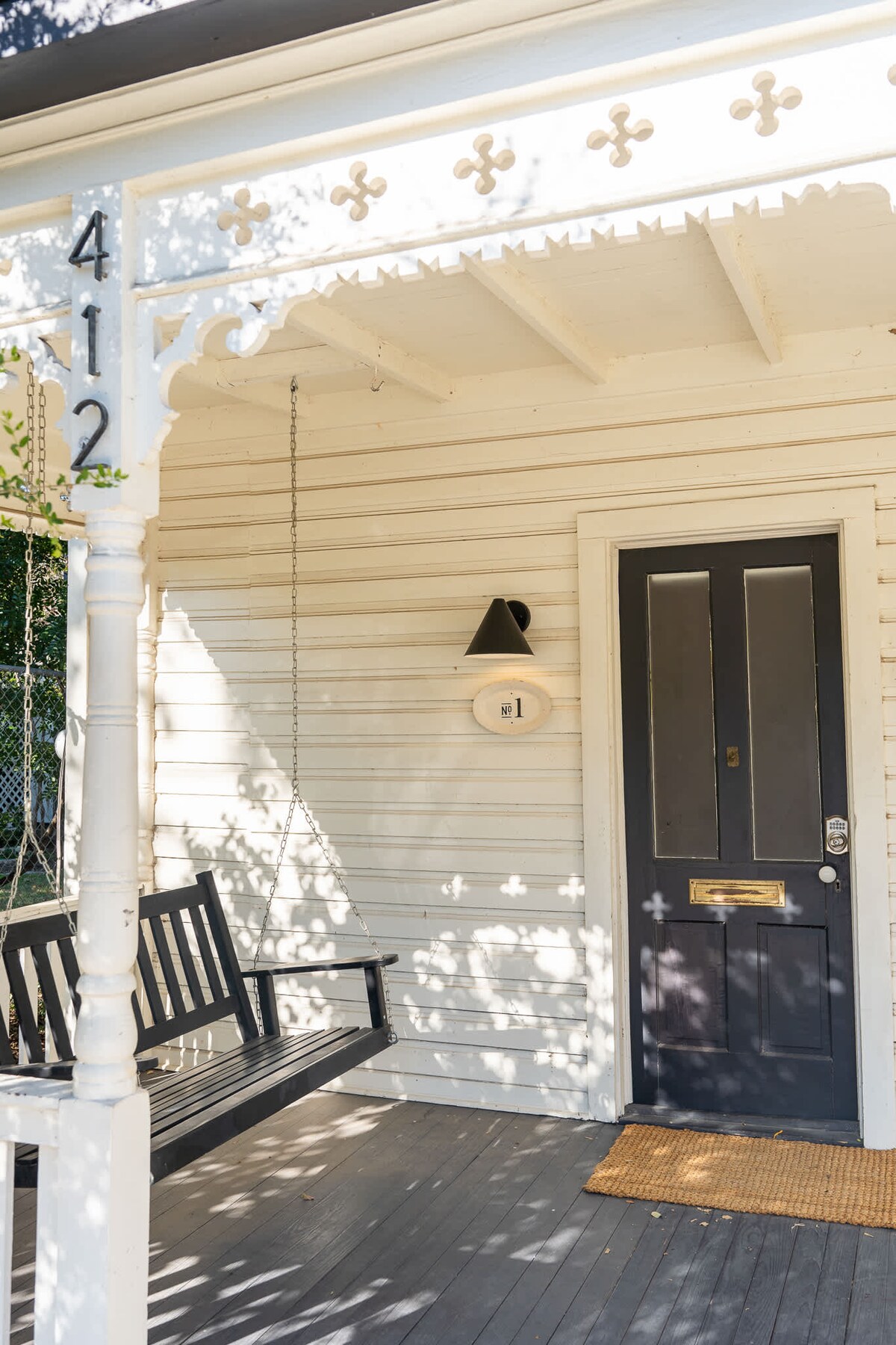 Welcome to No. 1, a cozy, modern private suite in a fully renovated 1900’s home in Fredericksburg, Tx. - Studio-style layout with king-sized bed and gas fireplace - Private courtyard with hot tub and outdoor shower - Kitchenette with mini-fridge, microwave, and coffee-maker - Complimentary Wifi access - Relaxing atmosphere just one block from historic Main Street - This unit does share walls with other units, but is private and no amenities are shared with other property guests.