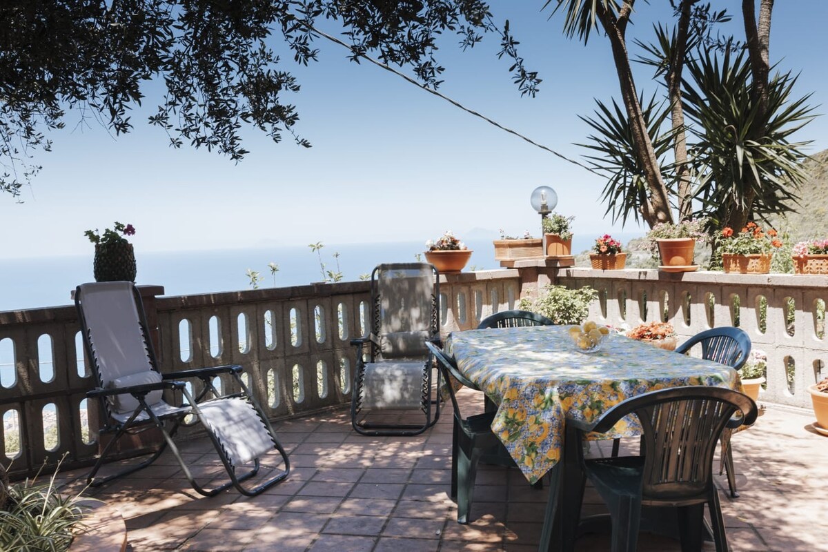 Casuzza duci is a cosy house set in a splendid panoramic location overlooking the tyrrhenian sea and the mountains. Ideal place for a romantic couple or a family loving nature and searching tranquility. Two bedrooms with big windows and fan ceilings opened to the garden area and a luminous living room boosting wooden ceilings and mosaics floors. A kitchen corner surrounded by windows where to cook admiring the transparent sea. A garden to relax in a hamac and a fully equipped barbecue.