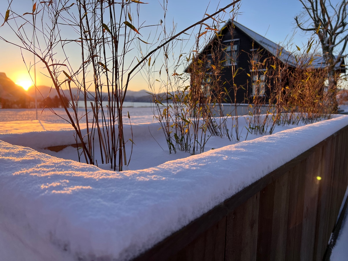 Dette spesielle stedet ligger på toppen av en liten bakke, med nydelig utsikt til fjell og sjø. Umiddelbar nærhet til byens sentrum med restauranter, matbutikk og bakeri. Kort vei til byfjell og et sjøbad med badstue om det skulle friste. Her har du alt du trenger for en helgetur eller lenger opphold. Hus med egen inngang og hage og gratis parkering med elbillader. Velkommen om du reiser alene, er en liten familie eller to par. Som gjest hos oss får du kaffe, deilig sengetøy og håndklær!