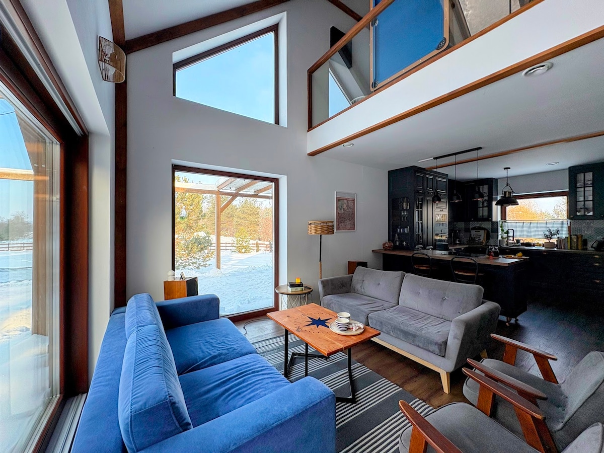 We offer for rent a unique facility with its own shoreline, ideal for relaxation in the midst of nature. Main amenities: - Private plot: guests have access to a plot where they can rent a sauna, jacuzzi, water bikes, kayaks and SUP boards, - A cottage with a view of the lake and a private pier, - The cottage is equipped with all necessary appliances, including a hair dryer, air conditioning, - To ensure complete freedom and comfort, we offer the possibility of self check-in.