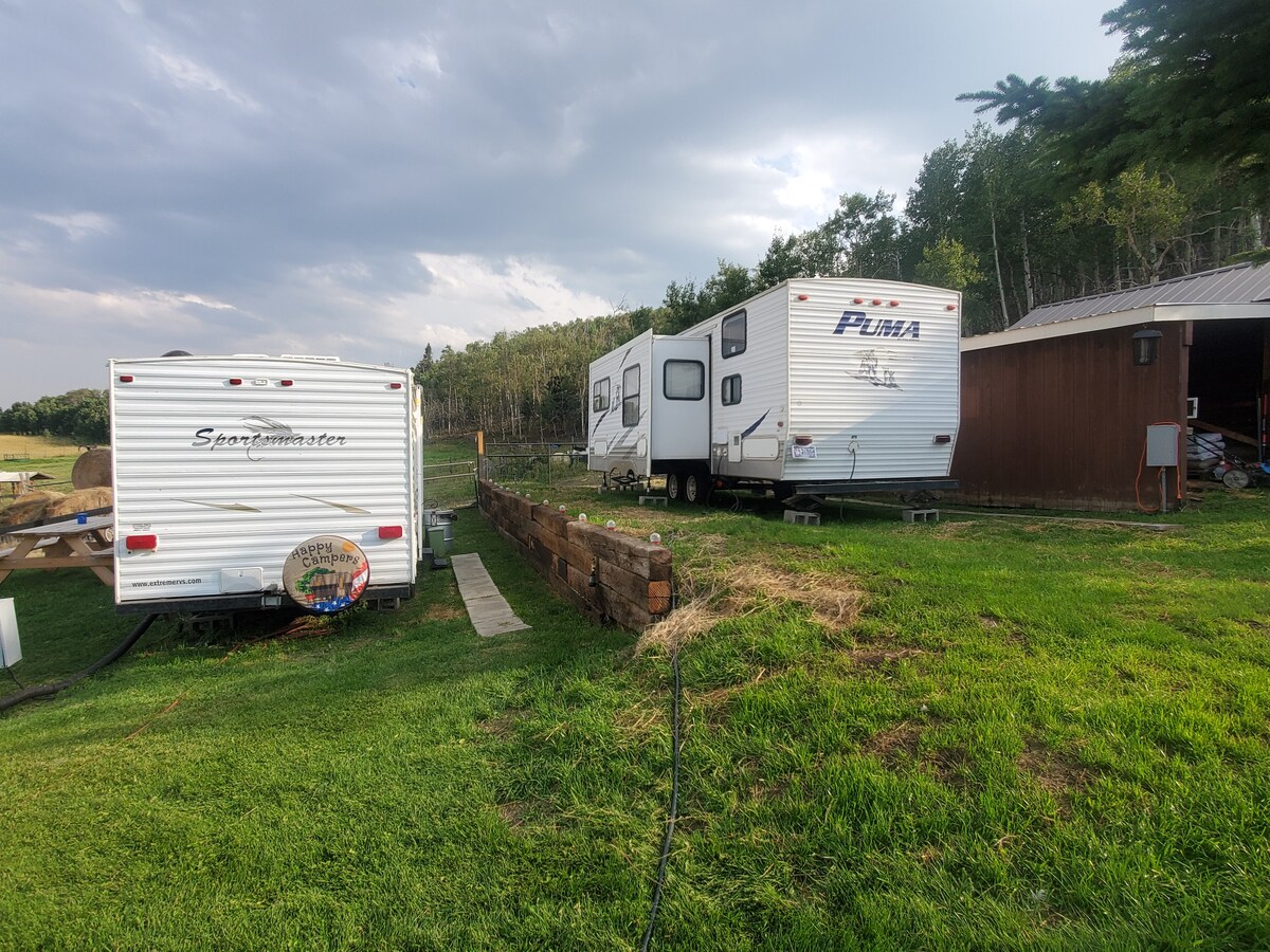The Penny Pincher Campy 2 rests on our beautiful rural farm, about a 20 mile drive from the Many Glacier area, and 10 miles north of Babb. Our property is full of kids, animals, and daily homesteading activities. The camper is a clean, cozy, more private alternative to the busy touristy areas nearby, but close enough for easy access to Glacier. Your stay here will require the opening and closing of a locked ranch gate. Friendly dogs in driveway, so if you're afraid of dogs, this isn't for you.