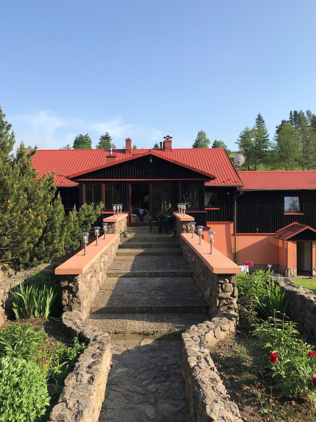 The "Szarak" apartment is located in the center of a picturesque village, at the foot of the Stołowe Mountains. It is an excellent starting point for people who like active recreation. By car or on foot, in just a few minutes, you can find yourself on the trails of the Gór Stołowych National Park, in Polanica Zdrój and Duszniki Zdrój.