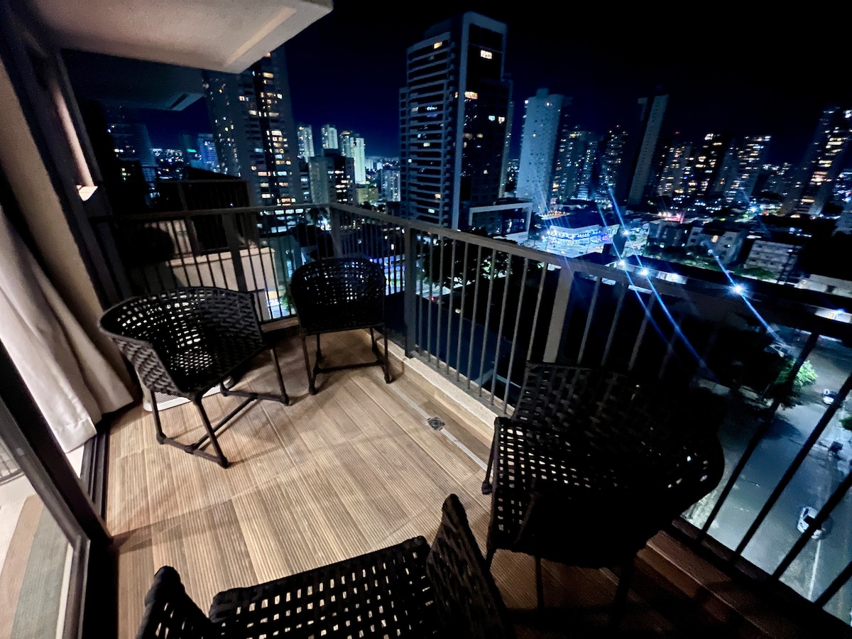 🤩 New condominium ❗️A unique, elegant and sophisticated apartment, designed to make you feel at home. Watch your favorite movie in the bedroom or living room on the most modern Smart TV in an air-conditioned environment. Rest in the best bed, enjoy the most pleasant shower, enjoy the balcony and a beautiful view and enjoy the contemporary Setor Bueno in the best region of Goiânia! Tai Residences Condominium