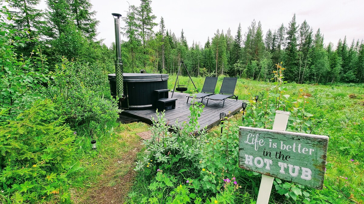 Cozy renovated cabin with living room, dining room, kitchen, 2 bedrooms. The hot tub that fills with water from the river is included in the price. The cabin has its own "bathroom" outside, with a combustion toilet, sink and shower with small 30L. Inside there is cold water in the tap from garden hose. No drinking water. A) You have to remember your own bedding and sheets B) Cleaning is not included. C) Wood and electricity is provided D) Drinking water must be brought