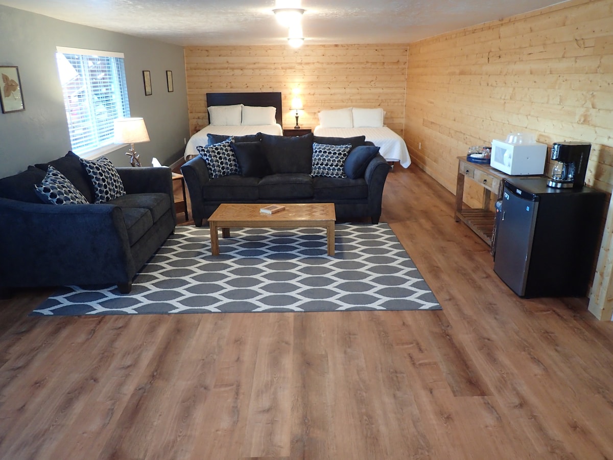The newly renovated Cannery Cabin offers a large spacious room with 2 brand-new memory foam Queen mattresses, a new two twin trundle bed, a bathroom, 2 brand-new couches, a coffee bar and television entertainment center. The 3 large windows offer views of the Pacific Ocean, the mouth of the Rogue River, and the beautiful Isaac Lee Patterson Bridge. The Cannery Cabin is the first floor of a two story building in which was the freezer room for the old cannery. No pets allowed. No exceptions.