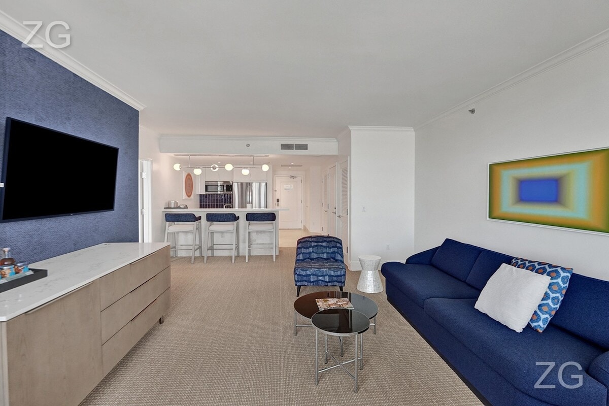 Come, spend a weekend or a few days and experience the epitome of luxury at our exquisitely renovated one-bedroom condo nestled within The Carillon Miami Wellness Resort. This unit features a separate living room with a pullout sofa bed, fully-equipped kitchen, dedicated work desk with a second screen monitor, and a lavish spa-like bathroom, all accentuated by floor-to-ceiling windows showcasing panoramic views of the pristine beachfront stretching up to Fort Lauderdale and the turquoise ocean.