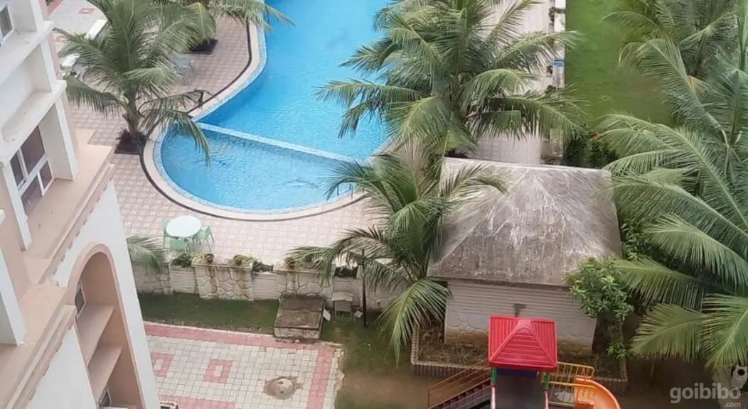 Two rooms, 1 master bedroom have king size bed, AC, TV etc. Other room attached with small kitchen with utensils, gas, microwave, sofa cum double bed. Balcony attached. big community campus. parking available. Blanket, linens (bedsheets), towels, soap, shampoo, toothpaste available. daily house keeping. Swimming pool. Sea beach 500 meter away. Lift is available. Two good hygienic restaurants for food. Children play area inside. Secure campus. Very good free road connectivity. use Bypass road.