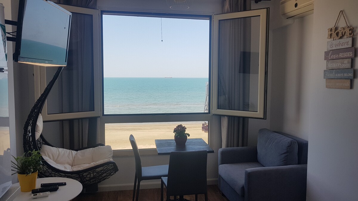 Arteg Apartments - Full Sea View is located a few steps from "Shkembi Kavajes" Beach, with a full sea view, in frequented area, front of the beach. It's on the 2th floor and is fully furnished. It suitable for the accommodation of 1-3 people and the apartment has a living room / bedroom, kitchen and bathroom. The apartment has a kitchen with all cooking utensils, air-conditioned, WiFi, TV, street parking, etc. It’s close to public transport, taxi, walking around seaside.