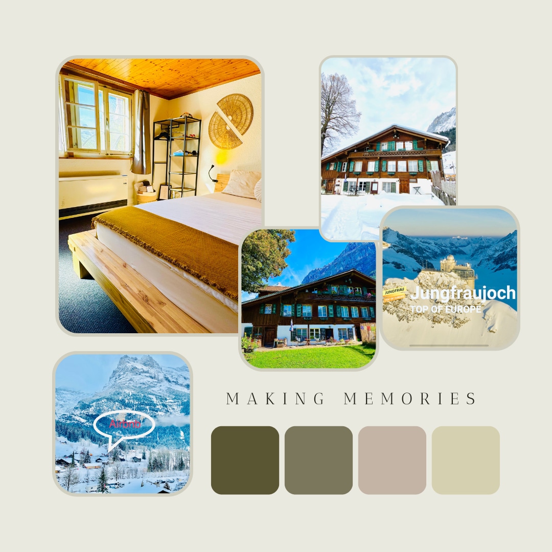 The Chalet Hollandia is located above the village of Grindelwald at 1180 meters above sea level.It is very quiet and offers a breathtaking view of the mountains of Grindelwald. In the apartment you will find everything you need to enjoy your stay in the glacier village Grindelwald. The chalet is right next to a bus stop, please check with your host about the timetables. The cozy Chalet Hollandia can be reached on foot in about 30 minutes from Grindelwald train station.