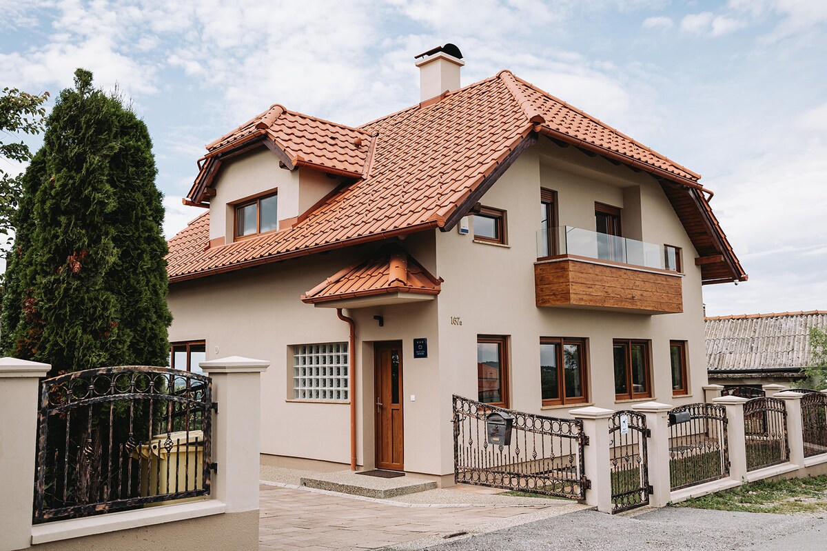 Here nature offers itself in magnificent beauty, and spectacular view on the north of Croatia is revealed. Among the beautiful green mountains of the north of Croatia, time has a different rhythm, brings gentleness and tranquility, gives exciting pleasure and fulfillment. With a view of the beautiful Zagorje landscape, you can enjoy nature, hike, walk, play tennis, enjoy our homemade wine or just relax in our house with a sauna, jacuzzi, wood-burning fireplace and other amenities we offer.