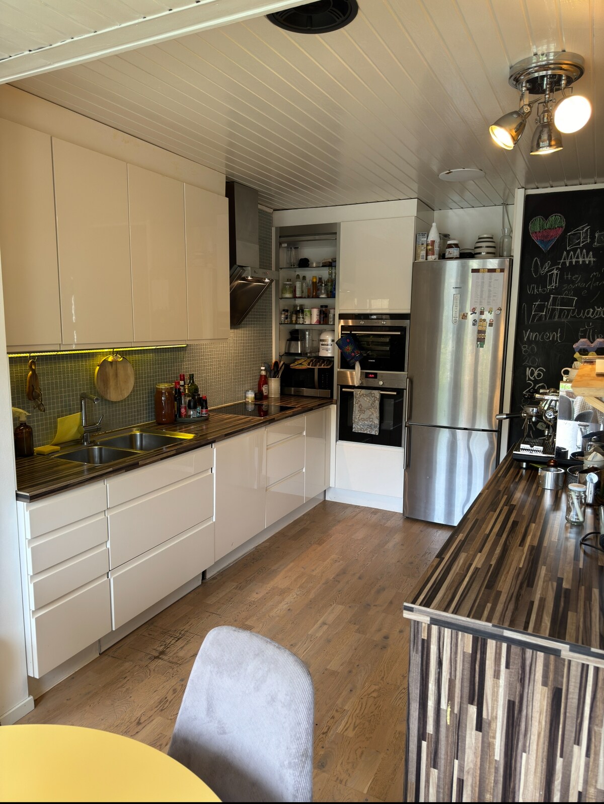 Modern oasis near the sea and the Gothenburg archipelago. Newly-renovated townhouse on 2 floors, 200 sqm. Only 5 minutes to the sea 🚗 and 10 minutes to the city center by direct bus 🚌 (stop 2 minutes away). Sunny location from morning to evening, two newly-renovated bathrooms, one with a sauna. Modern, open kitchen with large kitchen island and wine fridge & sparkling water. Large terrace with outdoor kitchen with barbecue & hob & fireplace. 75-inch TV with PS5. Grocery store nearby. Extra mattress can be added on request. Toys are available to borrow, Playground 1 min away