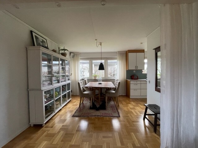 Small villa of 65 sqm on the return street with its own parking place, corner land to nature and terrace south facing with barbecue, accessible wood-fired independent sauna plus separate gym with porch. Walking distance to the beaches in the area for sunbathing and swimming and with good communication to the city of Gothenburg. A 4 minute walk to the bus stop with direct bus to City of Gothenburg takes about 25 minutes and by car 20, close to all shops and restaurants in Torslanda Amhult center