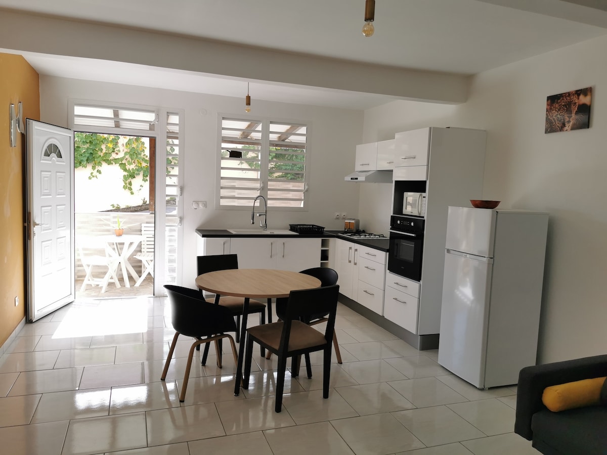 Come and settle your suitcases in this haven of peace on the heights of the marina. Villa on 2 floors 5 min walk to the beach and shops restaurants, 5 min drive to downtown Basse Terre. Starting point for hiking and nature walks: Soufrière volcano, love baths, blue basin.. The seabed is very beautiful. Let yourself be carried away by the sunset view of the Caribbean Sea on the terrace. Cats on site outdoors at 80% and without litter