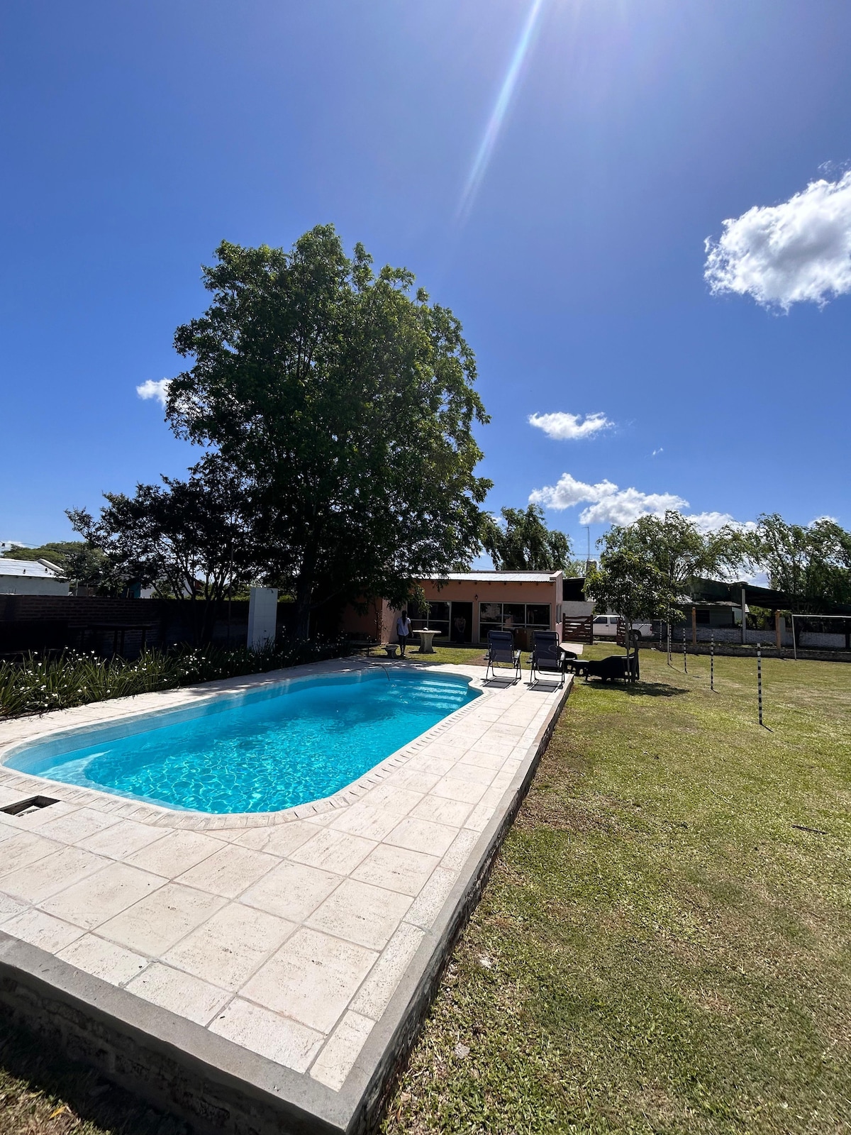 We provide you with a spacious and serene space. We assure you an optimal rest in our facilities. You can enjoy both the house and our gallery overlooking the green courtyard and pool. If you are passing through, we are in a new neighborhood called Villa Orestina, meters from the city's main entrance on Route 12. We are 9 minutes from the Costa del Surubi property, 12 minutes from the main waterfront, 10 minutes from downtown. And most importantly, we are available