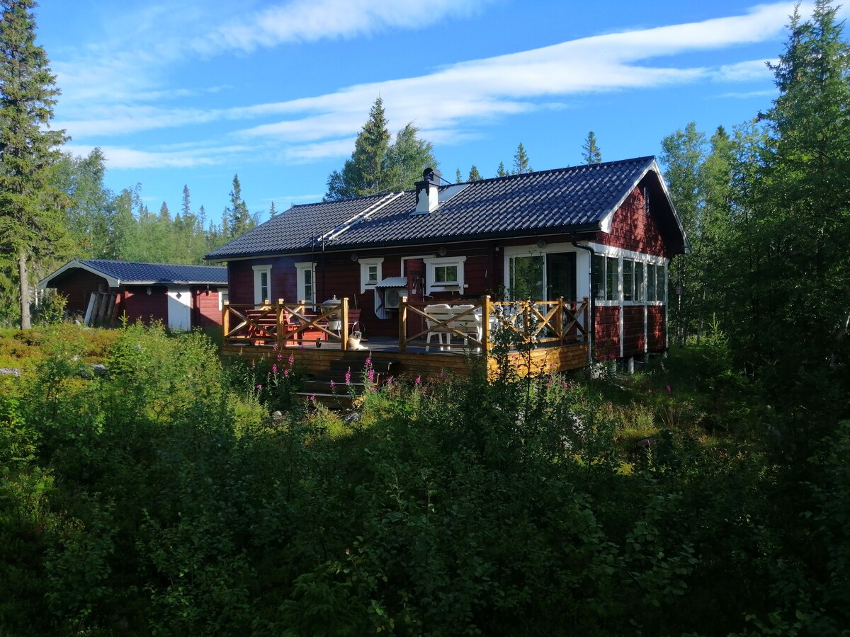 Here you will find a charming cottage in a quiet and natural environment. Sauna and barbecue hut on the balcony with majestic views. Ynka 50 meters down to the water. There is also a wide range of activities in the area. The cottage has lake views, fishing, forest, mountain hiking and swimming opportunities around the house. The cottage is cozily decorated with all the amenities you might need. There is a fireplace that makes the cottage, if possible, even cozier. Wi-Fi is available.
