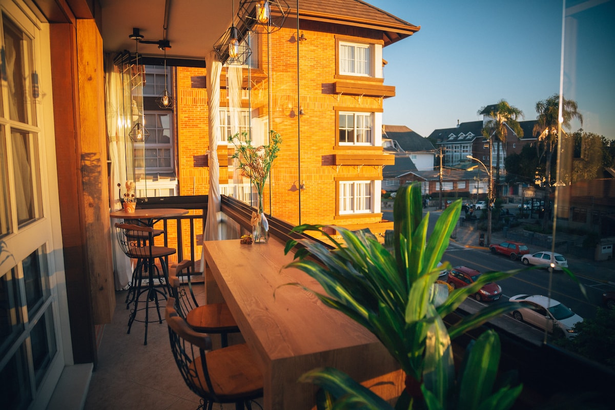 Apto Central em Gramado, com banheira de HIDRO