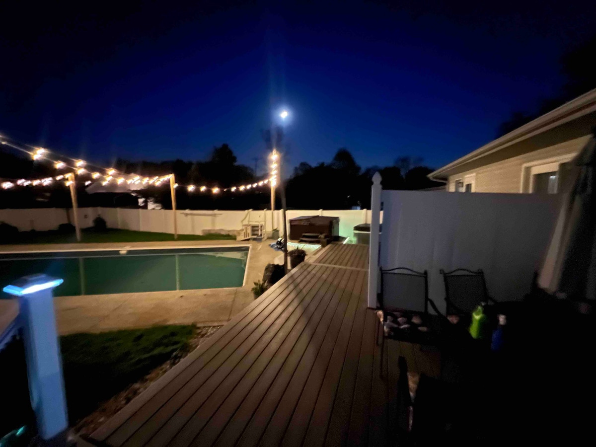 Freshly renovated duplex with a private 1 bedroom studio w/King bed & a pullout queen sofa sleeper. A fully stocked kitchen, fire lit living room and a washer & dryer for your convenience. Relax on the spacious deck next to the pool then enjoy the sunset in a brand new hot tub(2023). The overhead lighting creates a fun atmosphere! Enjoy a bonfire *wood is provided and your own Weber gas grill and patio furniture. Fully fenced yard for your furry friends *mini Doodle at the home *NO PARTIES*