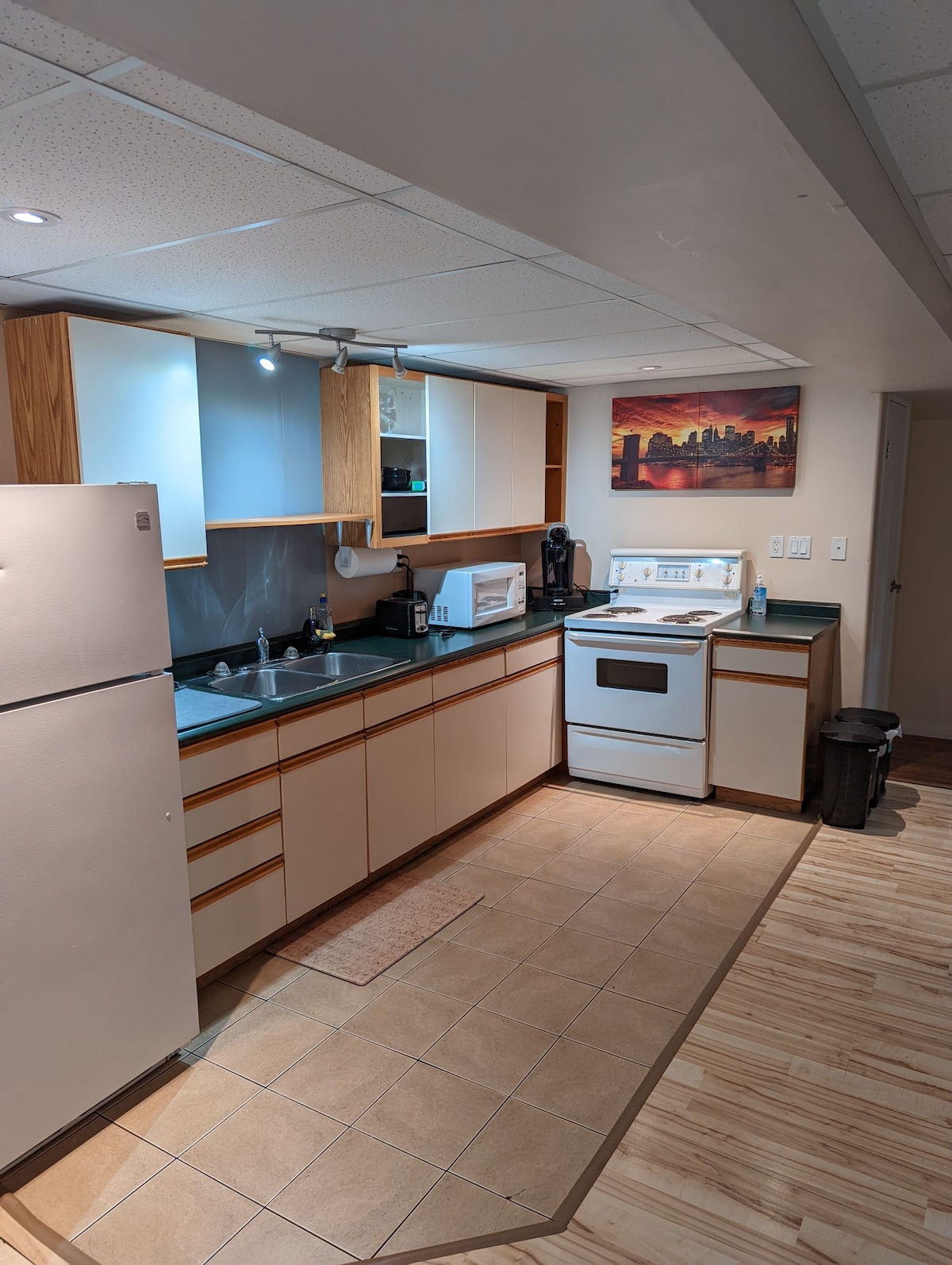 Looking for space, comfort, and peace? This basement suite is your perfect home away from home! ✨ It’s a spacious, bright, and well-kept space, offering luxurious touches like a self-cleaning gas stove, brand-new appliances, fresh floors, and a full kitchen. 🏡 You’ll also find a coffee maker for your morning brew, a shared washer/dryer, and a microwave for convenience. It’s all you need for a relaxing and comfortable stay! 😊