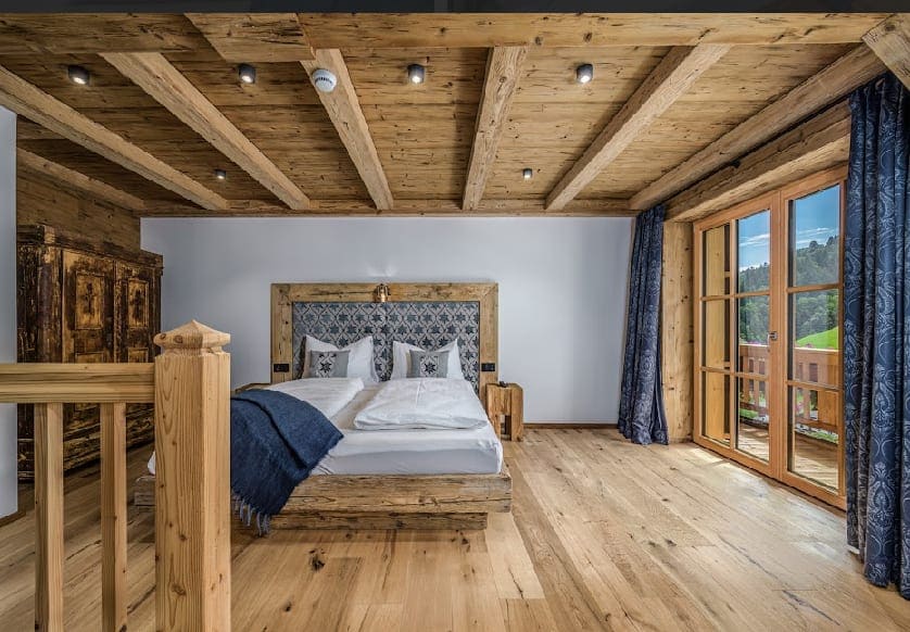 Unsere Suite "Königssuite" verfügt über eine eigene private Terrasse, einen großzügigen Schlafbereich, Badezimmer mit Badewanne und Dusche, Wohn- und Essbereich und Küche. Der durchgehende Holzfußboden unterstreicht das moderne Design und strahlt viel Wärme aus. Große Fenster durchfluten die Räume mit Tageslicht. Dekorative Holzelemente spiegeln die Liebe zum Detail wieder und schaffen eine wohlige Wohnatmosphäre.