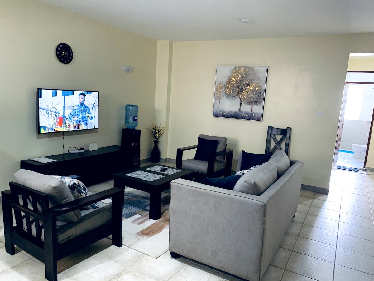 Kb ventures Home is a serene modern well furnished one bedroom which offers a homely feeling away from home. It has a fully equipped kitchen,Fresh water is available. Self check in. It’s situated about 20 minutes from the airport(depending on traffic) Nyayo estate is a gated community with 24hrs security. We have secure parking spot on the property. Shopping center is available on site. I welcome you to feel at home and make memories in this amazing apartment.
