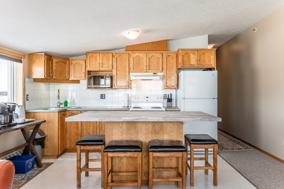 Welcome to The Old Town Landing, Unit 301 – a lakefront apartment in Yellowknife’s Old Town. With two bedrooms, one bathroom, a fully equipped kitchen, laundry room, keyless access, and a parking stall with a plug-in, this home blends comfort and convenience. Please note that this is a 3 story walk up unit. Enjoy the spectacle of the Aurora Borealis from your own balcony, the midnight sun during summer, and close proximity to many restaurants, cafes and tourist attractions.