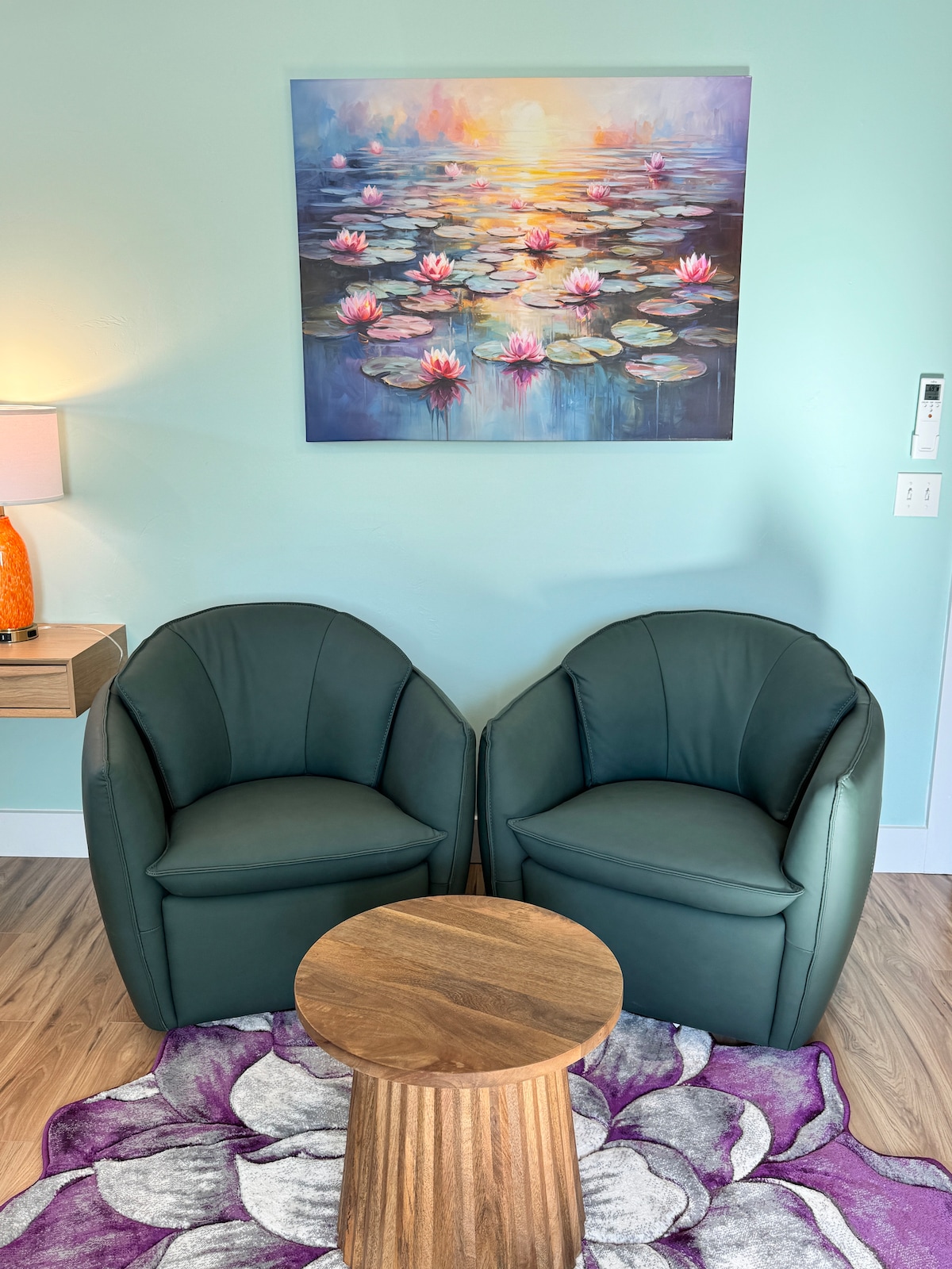 The Violet Inn is an adults-only boutique hotel in Two Rivers, small and cozy with modern hotel comforts. Set in a newly renovated 1926 building, the inn blends Scandinavian minimalism with lush botanical design. Enjoy digital check-in, keyless entry, and access to The Nest, our plant-filled lounge. Minutes from Lake Michigan, trails, and downtown, perfect for a quiet, design-forward getaway. 21 and over, no pets.