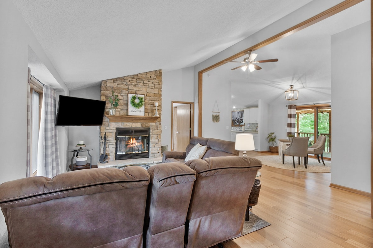 Unwind in this cozy three bedroom Green Lake cottage home. The stone home was lovingly built with wood floors and open kitchen and living space. Relax at anytime of the year with four season recreational activities in Green Lake: golfing, ice fishing, snowshoeing, and water sports. Take a stroll down the bike trail nearby that leads through downtown green lake or the Lawsonia Golf Course. Retreat outside to grille out on the patio or enjoy a warm campfire with toasted marshmallows.