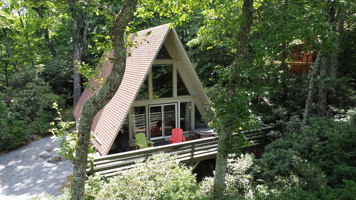 Our beautiful A frame home, with a mid century modern feel, is tucked away in the rhododendron and birch trees of Beech mountain. We’re Located off the beaten path of the town yet really close to Beech mountain club and Ski resort. ( 5minutes). The Ski lifts, restaurants, hiking, golf, and everything Beech Mtn. has to offer is minutes from our door! Our peaceful and spacious home is 1800 sqft of soft natural light from large Picture windows and is cozy in the winter with two fireplaces.