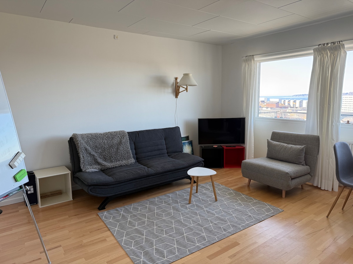 Nyd din ferie i en unik nybygget lejlighed, med den bedste udsigt over Nuuk fjorden. Nyd solnedgangen og se nordlyset inde fra lejligheden. Det er i et roligt og hyggeligt område i den gamle og ikoniske bydel “myggedalen” Det er i gåafstand til kolonihavnen og bymidten. Den rummelige lejlighed har en hyggelig stue med stort TV, samt fuldt udstyret køkken. Soveværelset har en dobbeltseng og i stuen er der en stor og behagelig sovesofa. Lejligheden deler indgang med et lille kontorfællesskab.