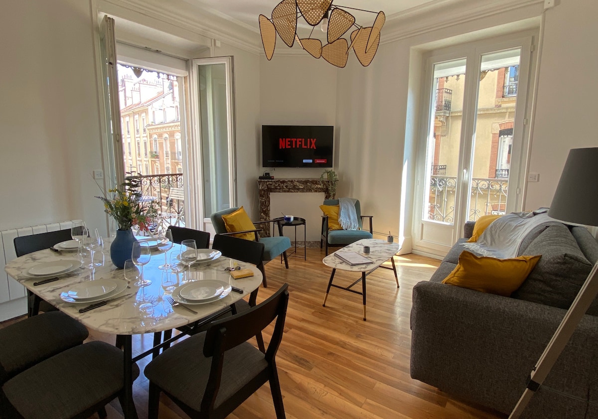 Location No. 1: 5 minutes walk from the station, 8 minutes from GEM, 3 minutes from the famous cable car, at the gates of the hyper-center Welcome to my apartment “the Cable Car” ideal for 6 with air conditioning On the 3rd floor with elevator and balcony of a Haussmann building, you can admire the postcard of Grenoble from your sofa during your stay... 80 m2 completely renovated, it was important to me to preserve its soul and its character. I have arranged it so that you can feel at home.